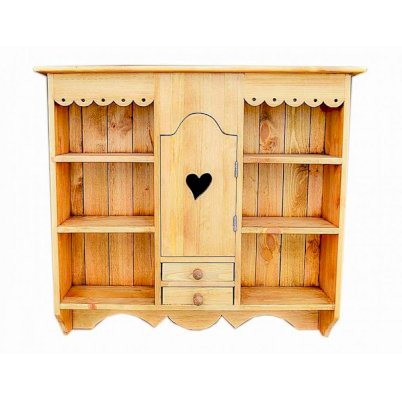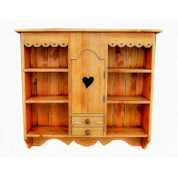 Классический навесной шкаф из прованской коллекции. Шкаф удобен для хранения посуды, салфеток, бокалов. Он прекрасно сочетается с другими элементами коллекции. По бокам - две открытые ниши, в центре шкафа дверь с полкой и два малых ящика.