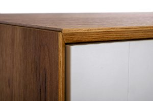 - В центре два выдвижных ящика на шариковых направляющих нижнего крепления не полного выдвижения с доводчиком.