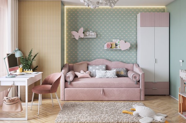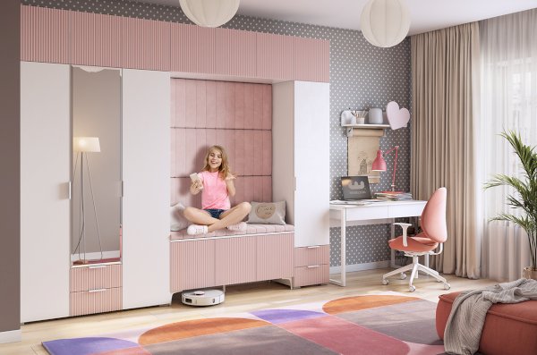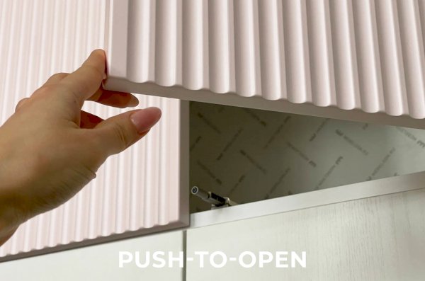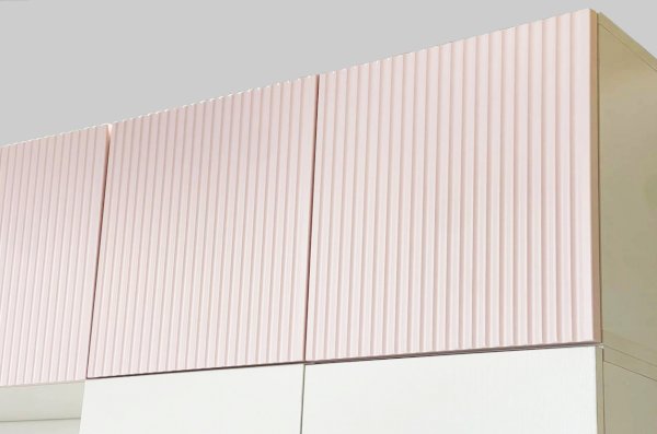 Мы использовали высококачественные материалы для создания этого шкафа. Корпус изготовлен из ламинированного ЛДСП в белом дереве, а фасады выполнены из МДФ цвет эмалевого покрытия пудра розовая. На фасаде фрезеровка в виде полос, придающей продукту изысканный вид.