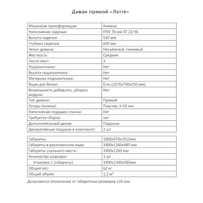 Диван Латте (Аквилон) – товар доступен к покупке в интернет-магазине tverskoy-dommebeli.ru. Цена – 28 565 руб. без учета доставки. Стоимость дополнительных услуг и сроки получения мебели уточняйте у менеджера. Возможен безналичный расчет, оплата по карте на сайте.