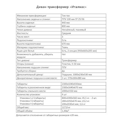 Диван-трансформер Италмас (Аквилон) – товар доступен к покупке в интернет-магазине tverskoy-dommebeli.ru. Цена – 73 394 руб. без учета доставки. Стоимость дополнительных услуг и сроки получения мебели уточняйте у менеджера. Возможен безналичный расчет, оплата по карте на сайте.